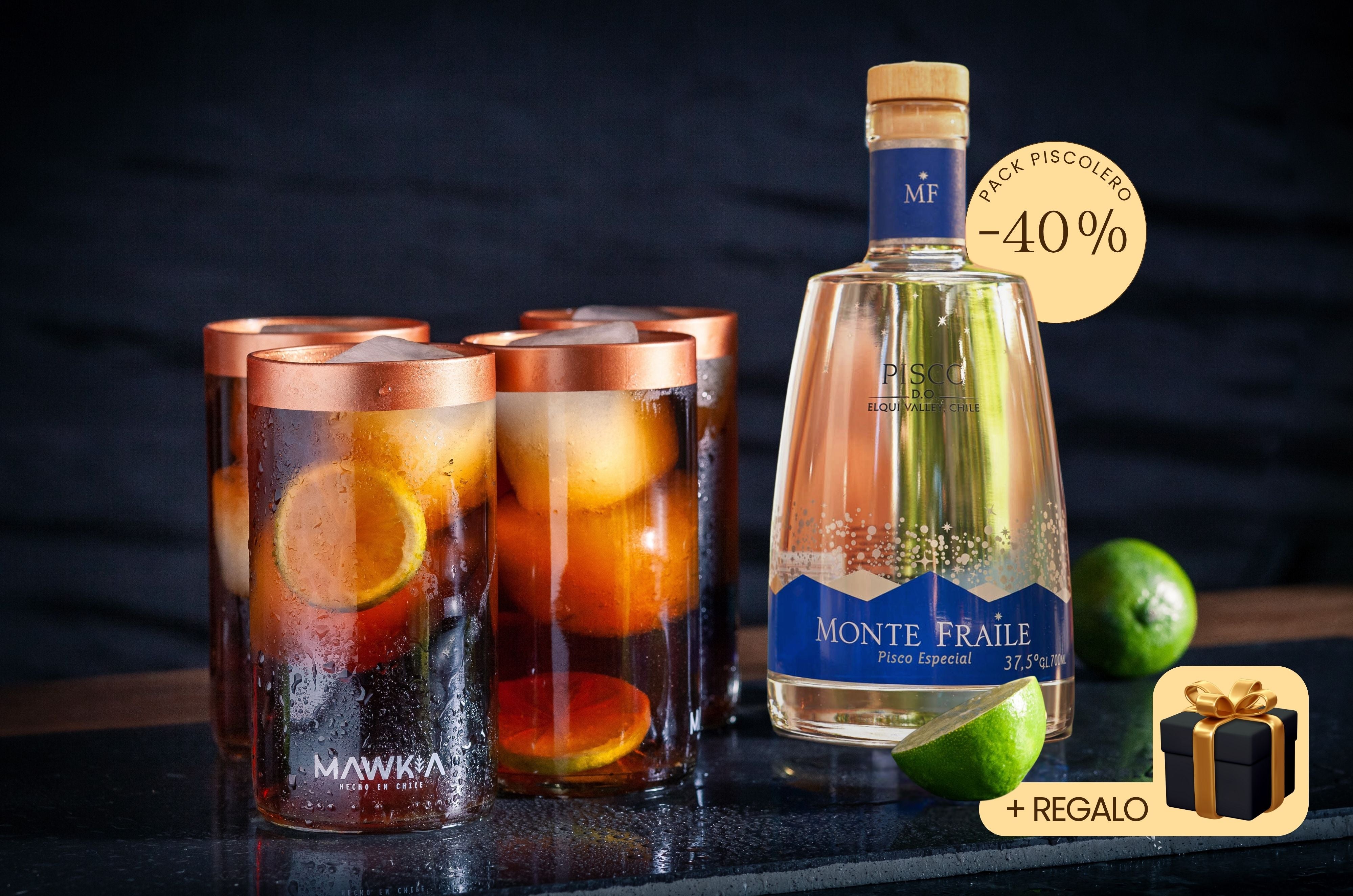 Pack Piscolero: Set de 4 vasos Piscolero Nacional + Pisco Monte Fraile + Recetario de autor + Videos guiados por un Barman + Botánico deshidratado + REGALO sorpresa GRATIS